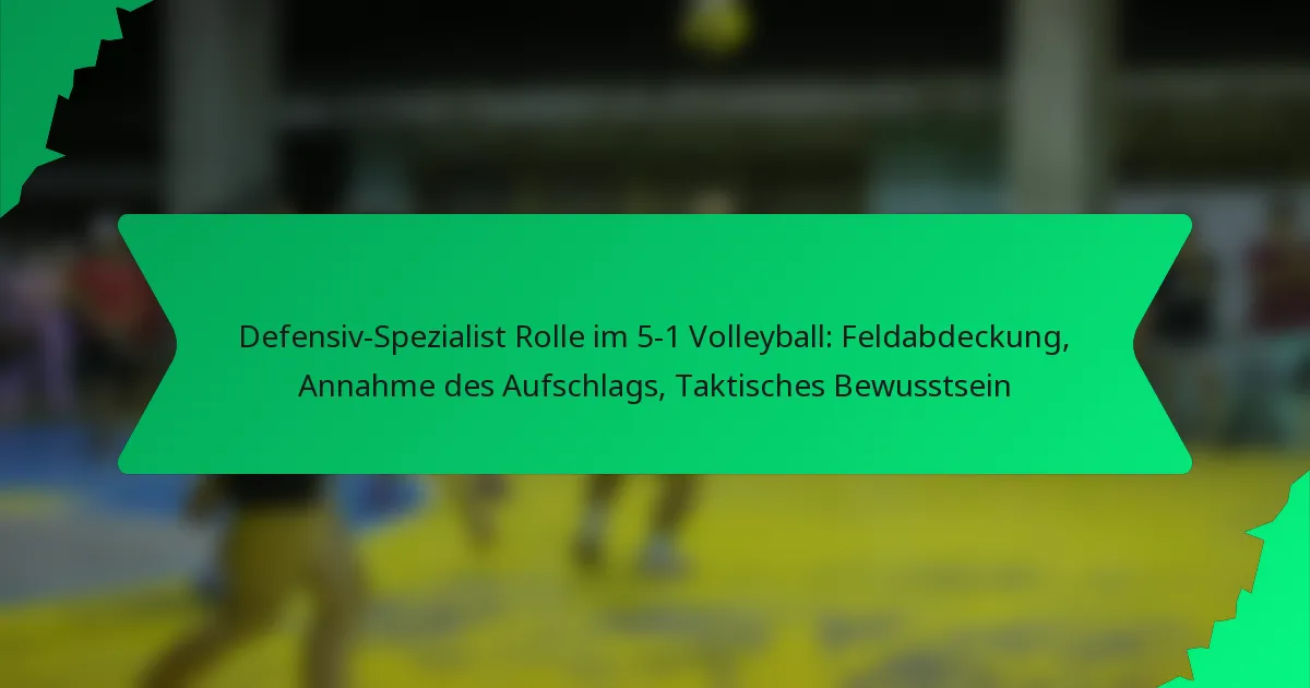 Der defensive Spezialist in einem 5-1 Volleyballsystem spielt eine entscheidende Rolle bei der Stärkung der Verteidigung des Teams, wobei der Fokus auf dem Annahme von Aufschlägen und der Abdeckung des Spielfelds liegt. Diese Position erfordert ein starkes taktisches Bewusstsein und effektive Kommunikation, um Spielzüge vorherzusehen und eine nahtlose Koordination mit den Mitspielern sicherzustellen. Durch das Beherrschen der Spielfeldpositionierung und das Verständnis von Aufschlagmustern legt der defensive Spezialist die Grundlage für erfolgreiche offensive Übergänge.